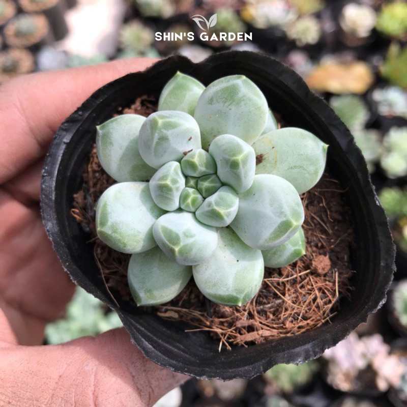 Sen đá kim cương trắng là một trong những dòng sen đá mini đẹp tinh tế đến từ thương hiệu Shin’s Garden. Với nguồn gốc từ Mexico, cây sở hữu lá mọng dày xếp tầng như viên kim cương, màu trắng ngà ánh ngọc độc đáo. Không chỉ mang vẻ ngoài cuốn hút, sen đá kim cương còn mang ý nghĩa phong thủy sâu sắc: giúp tăng may mắn, giảm căng thẳng, đồng thời phù hợp với mệnh Kim và Thủy. Thiết kế nhỏ gọn, cây rất được ưa chuộng để làm cây để bàn làm việc, decor phòng khách hay chậu sen đá để bàn trong không gian quán café, văn phòng hiện đại.